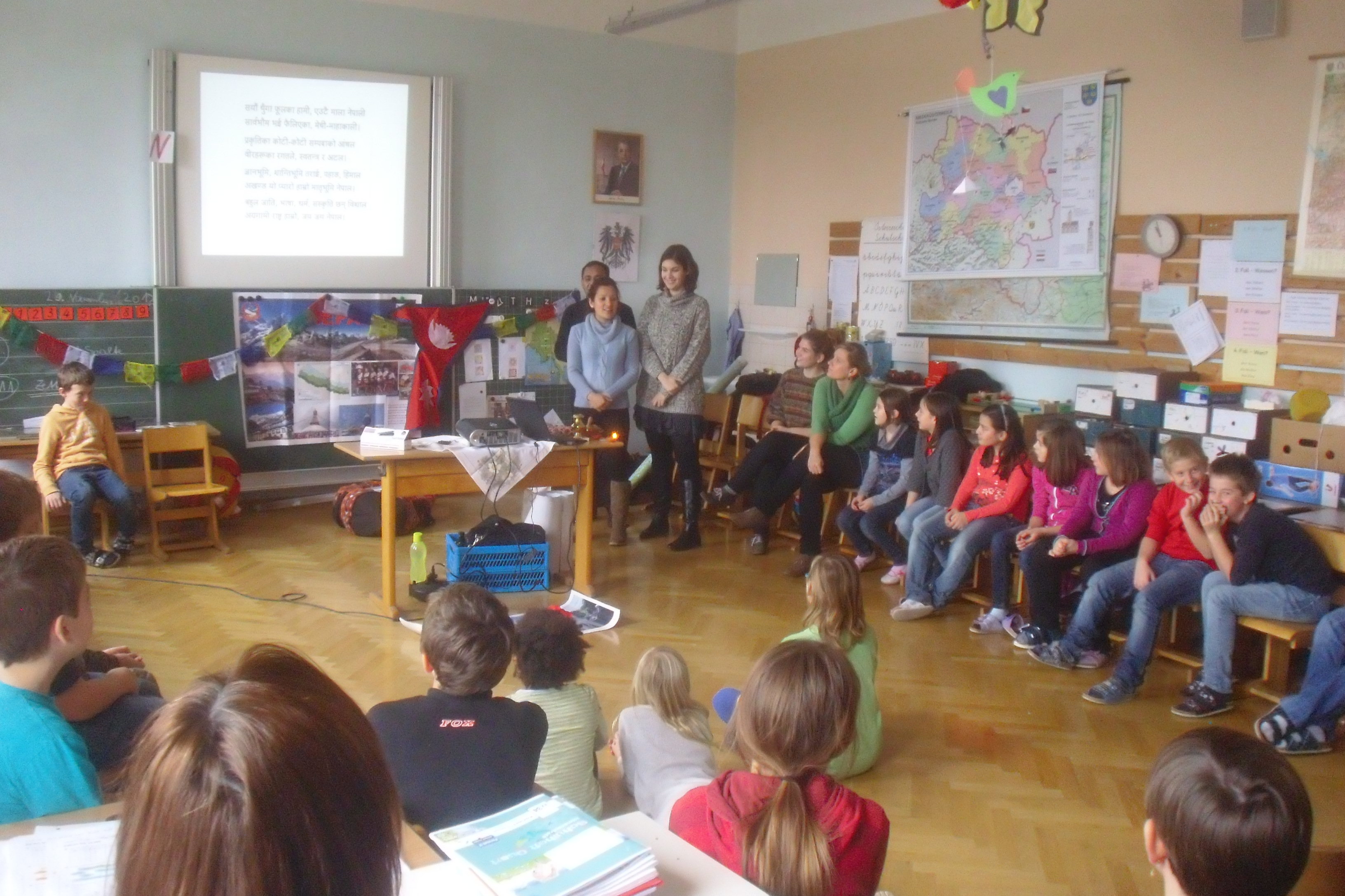 Am 29. November hatten wir hohen Besuch in unserer Volksschule. Die ‚Chefin‘ aller SternsingerInnen besuchte uns mit 2 Menschen aus Nepal, um über die Not in diesem Land zu berichten. Es ist schön und wichtig zu wissen, FÜR WEN man als Sternsinger unterwegs ist. Wir haben viel über das Land und das Leben in Nepal gelernt. Natürlich wurde auch gespielt, getanzt und ‚gequizt‘!