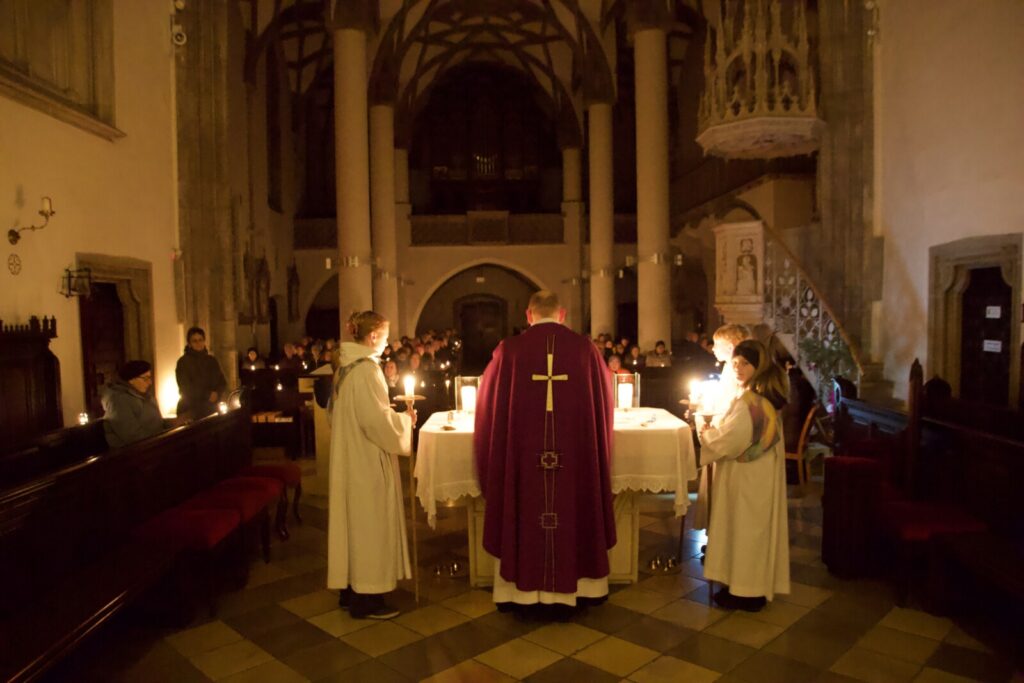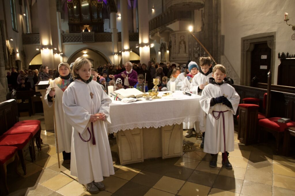 Kaplan Henry feierte mit den Hoheiten und deren Begleitern einen stimmungsvollen Gottesdienst, vorbereitet von Renate Steffelbauer und dem Sternsinger-Betreuungsteam.