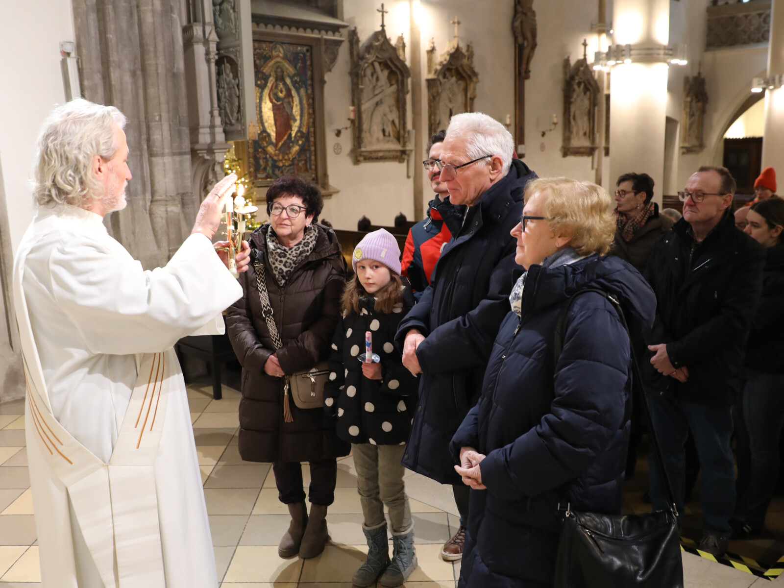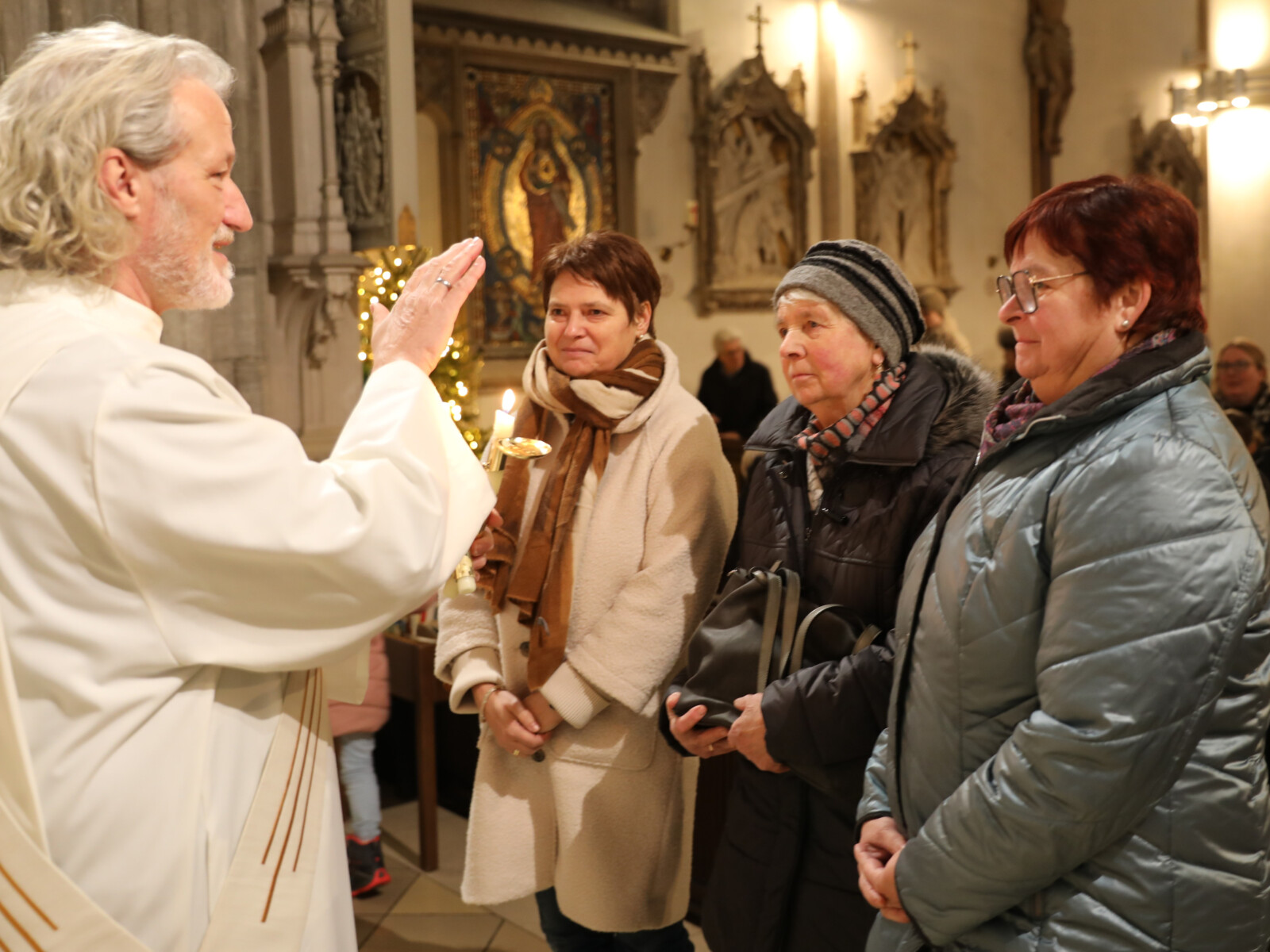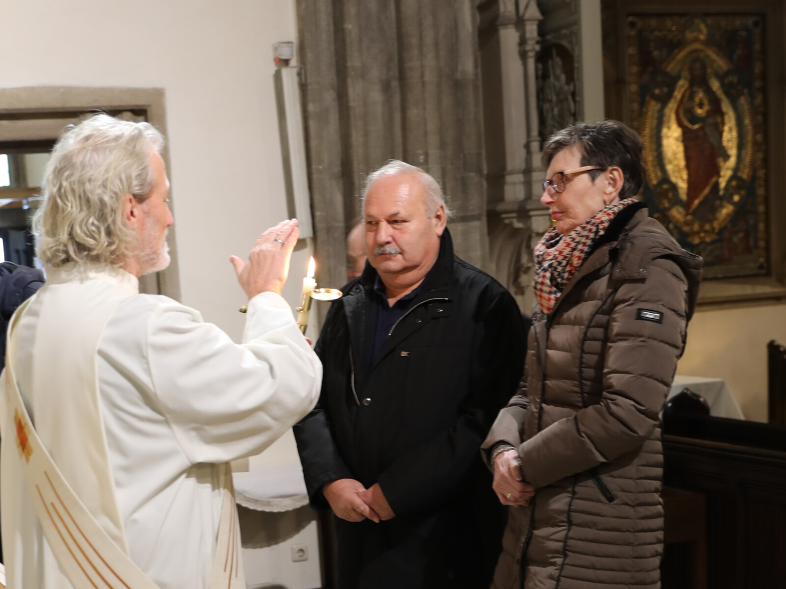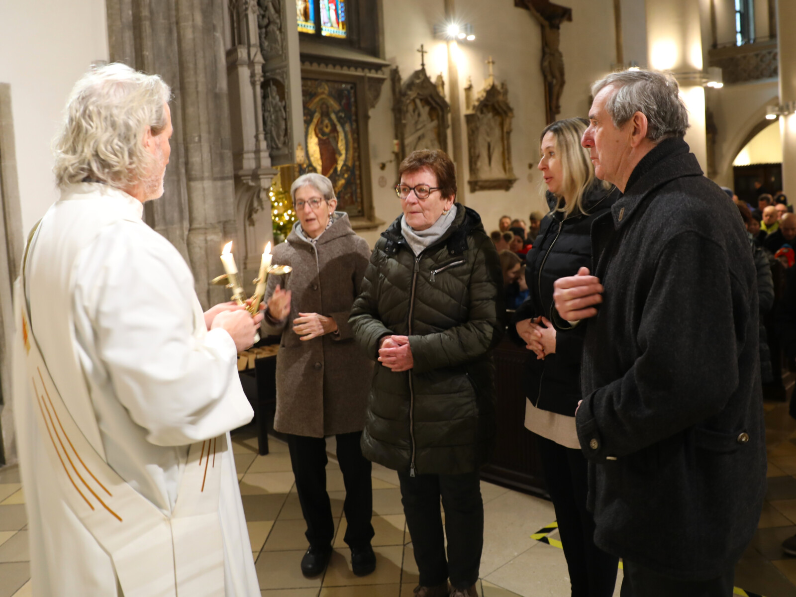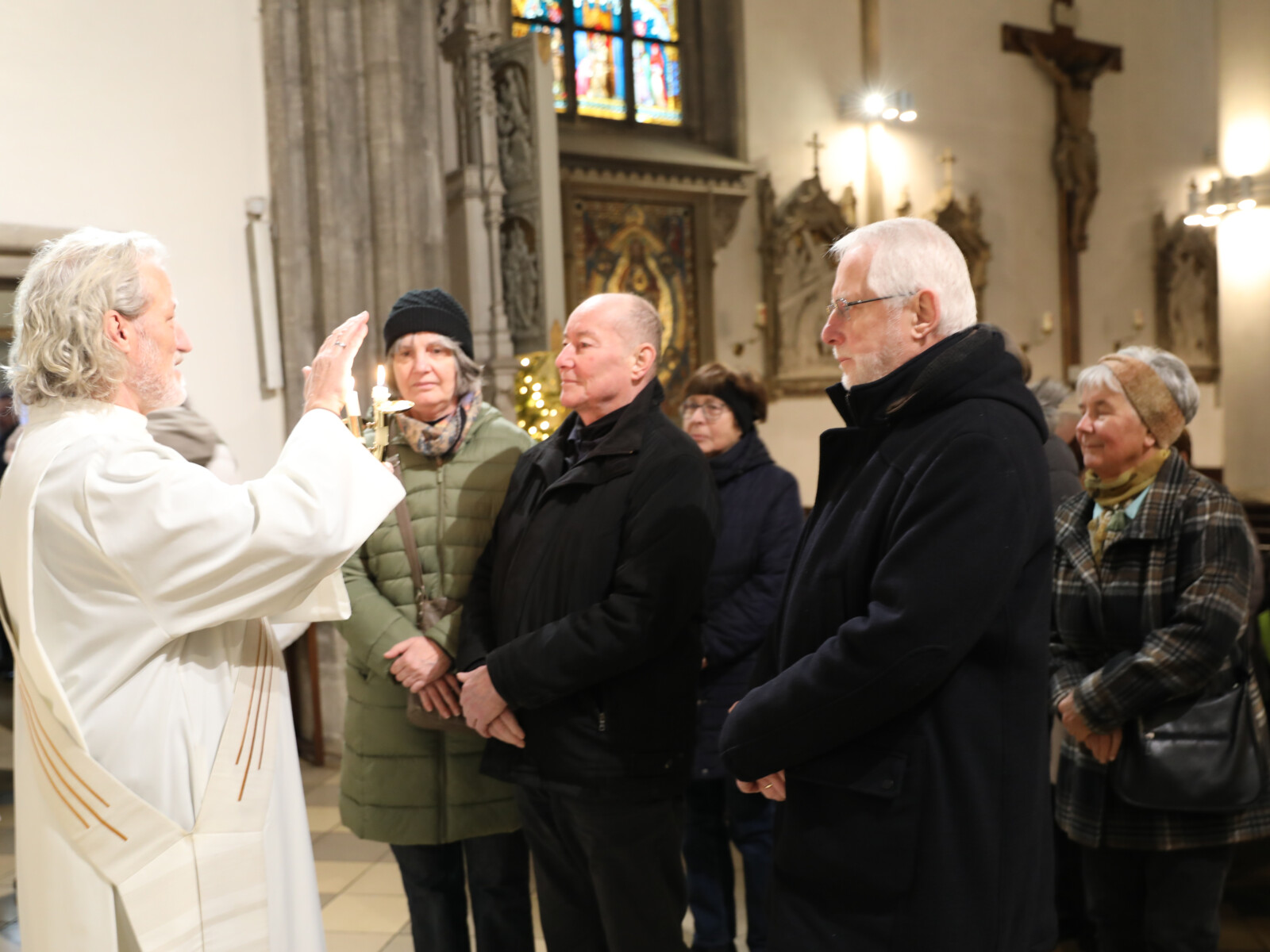 Im Anschluss an den Wortgottesdienst spendete Diakon Christian Muigg den zahlreichen Gottesdienstbesuchern mit geweihten gekreuzten Kerzen den Blasiussegen.
