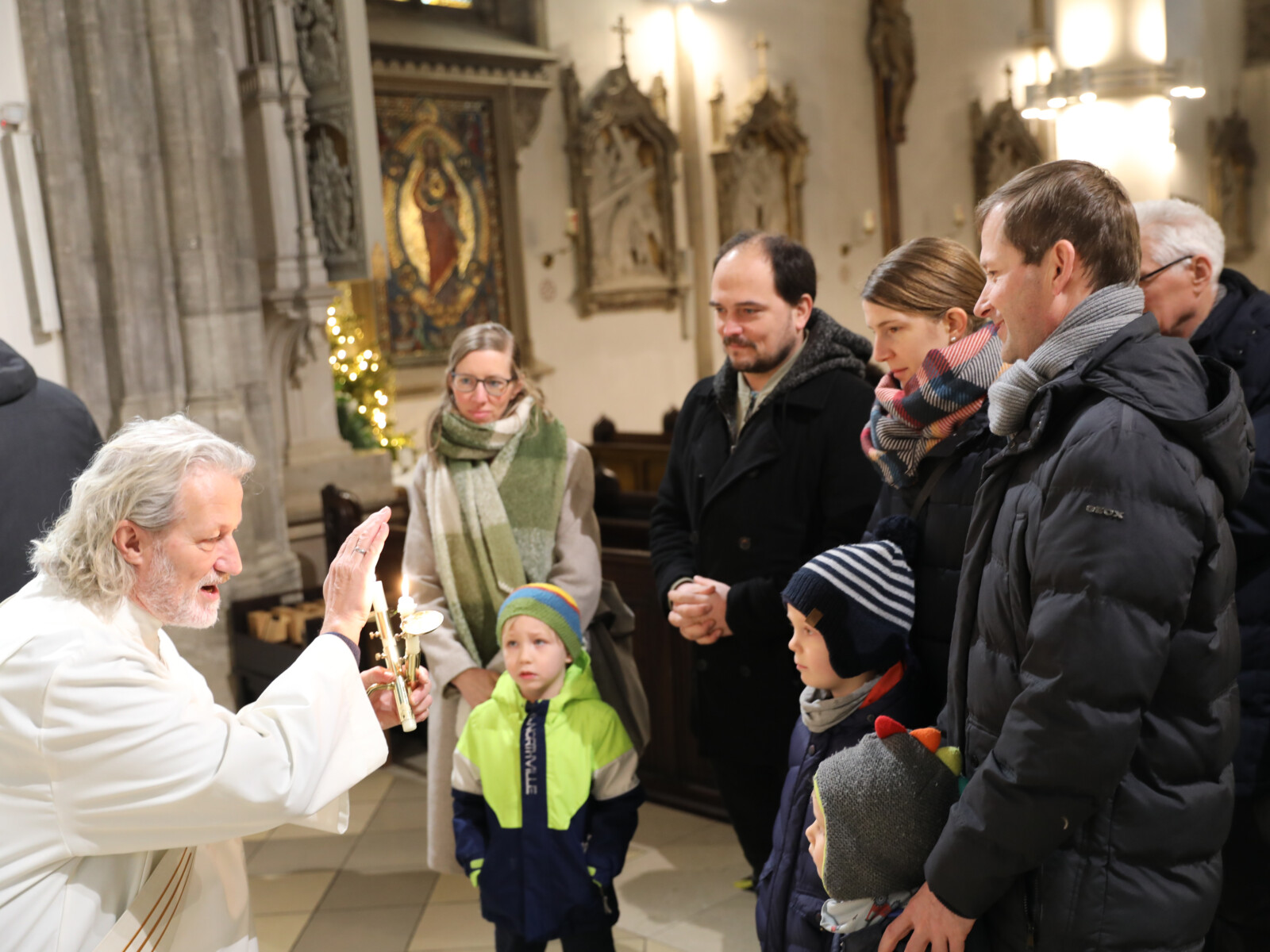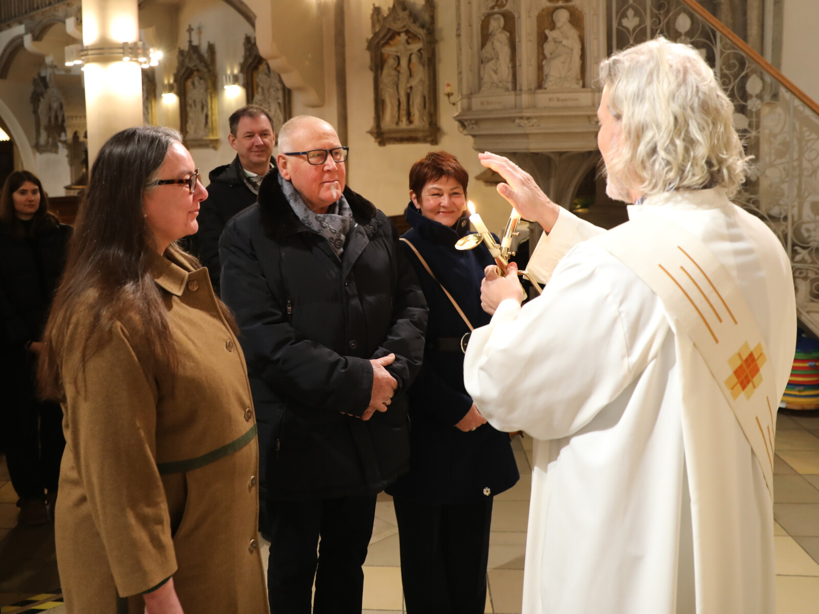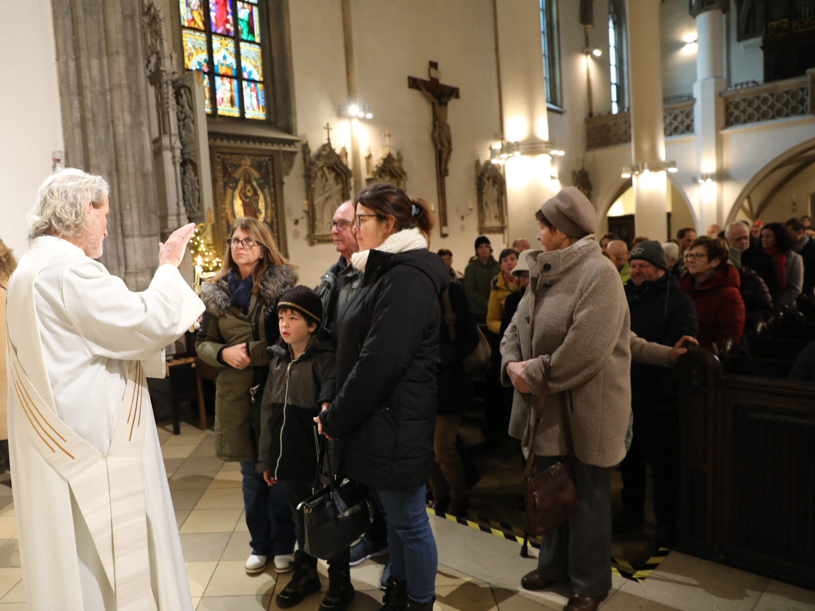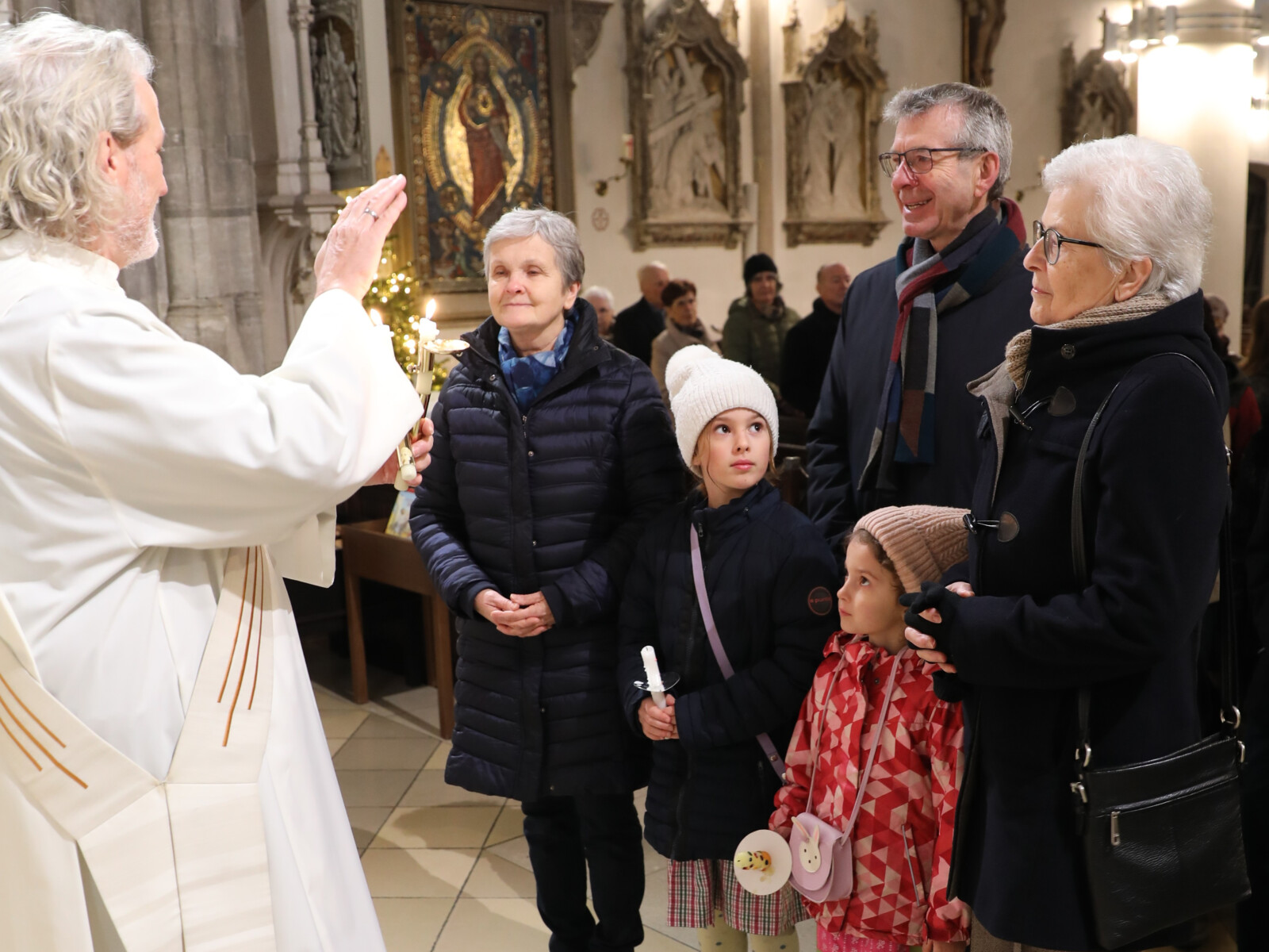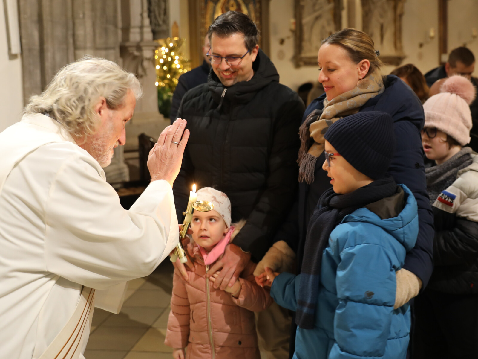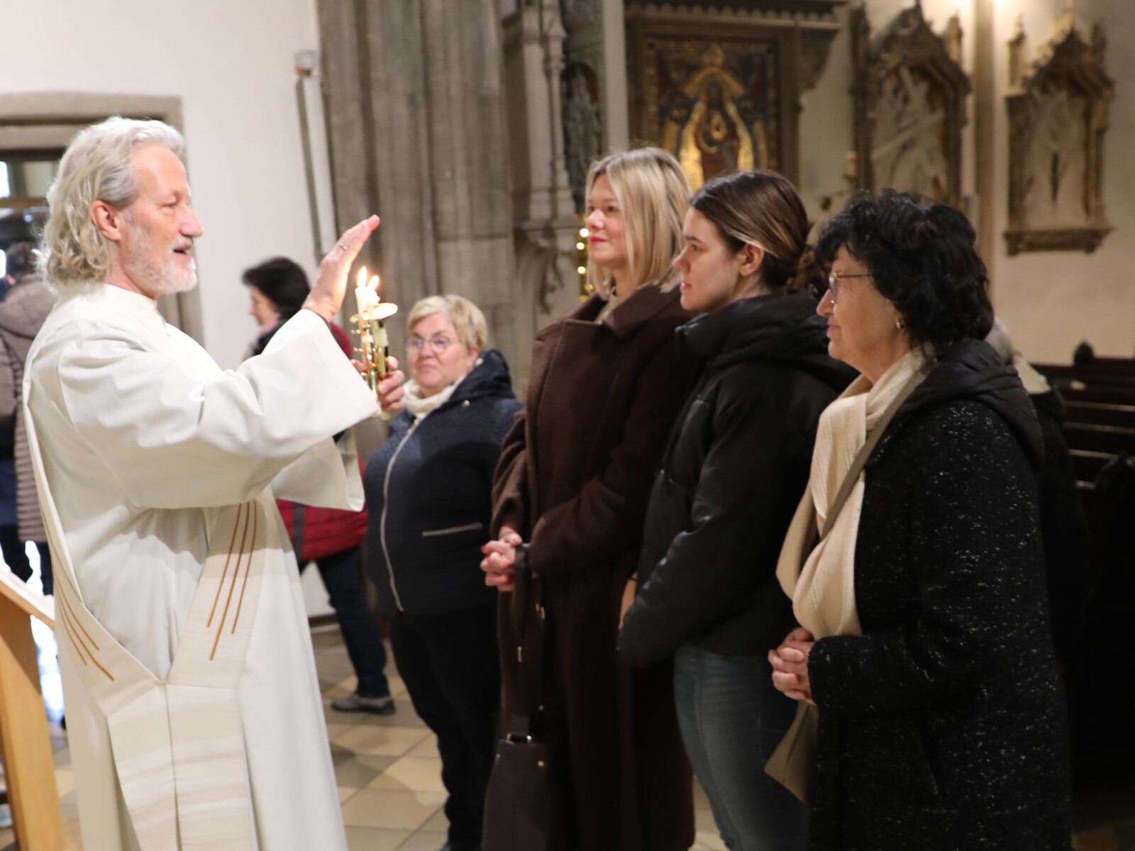Im Anschluss an den Wortgottesdienst spendete Diakon Christian Muigg den zahlreichen Gottesdienstbesuchern mit geweihten gekreuzten Kerzen den Blasiussegen.