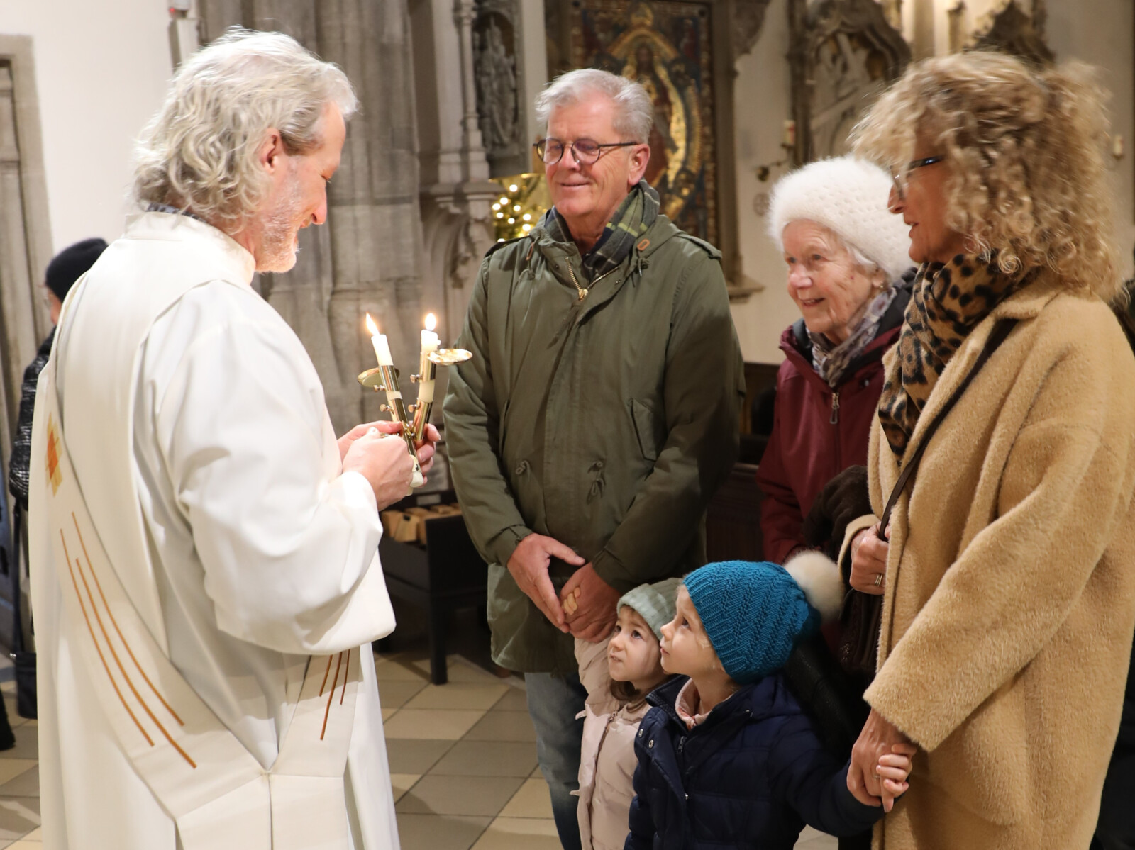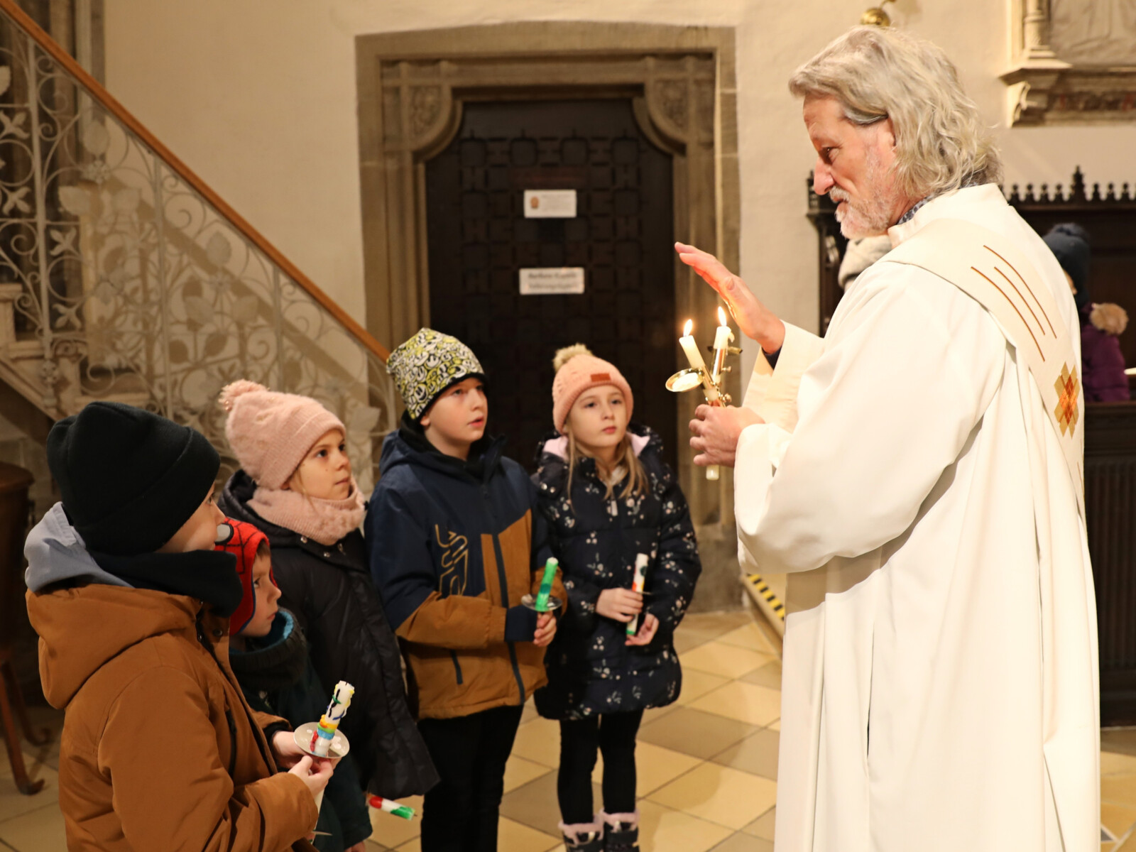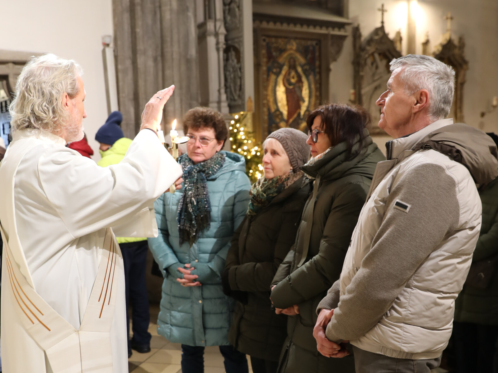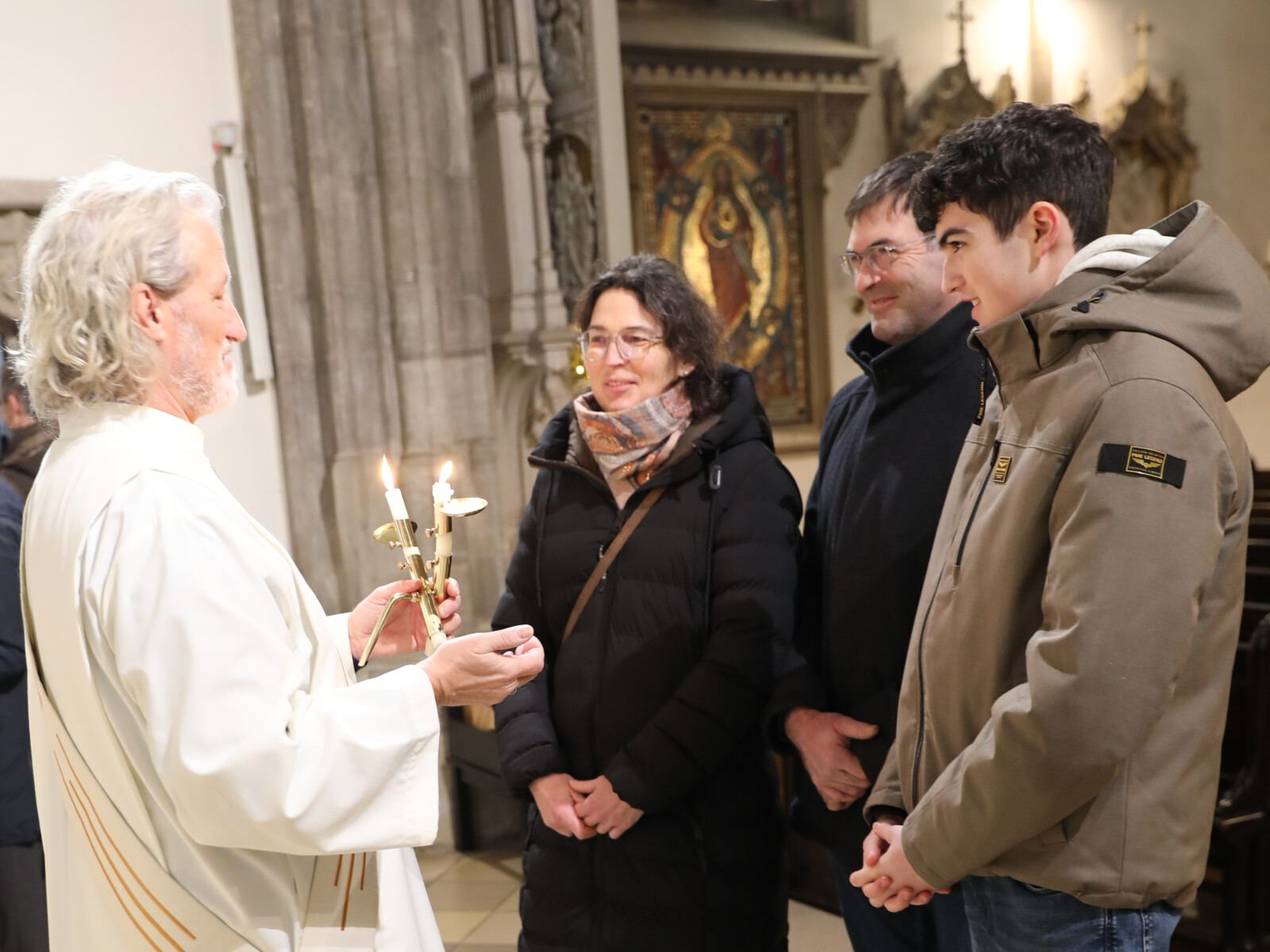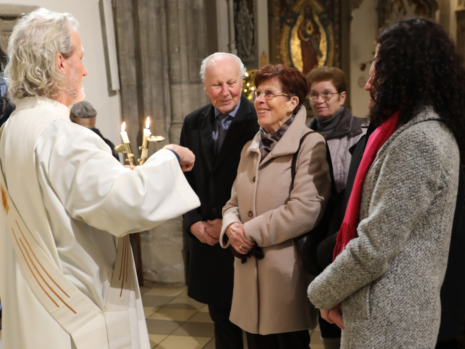 Im Anschluss an den Wortgottesdienst spendete Diakon Christian Muigg den zahlreichen Gottesdienstbesuchern mit geweihten gekreuzten Kerzen den Blasiussegen.