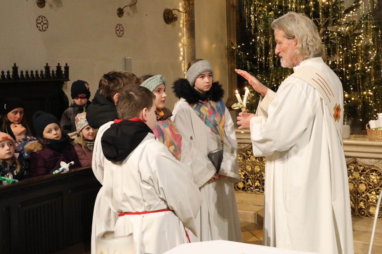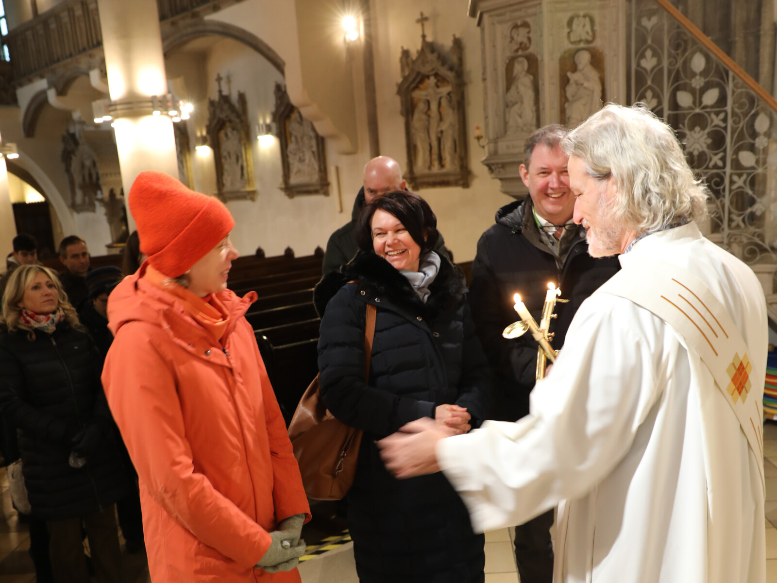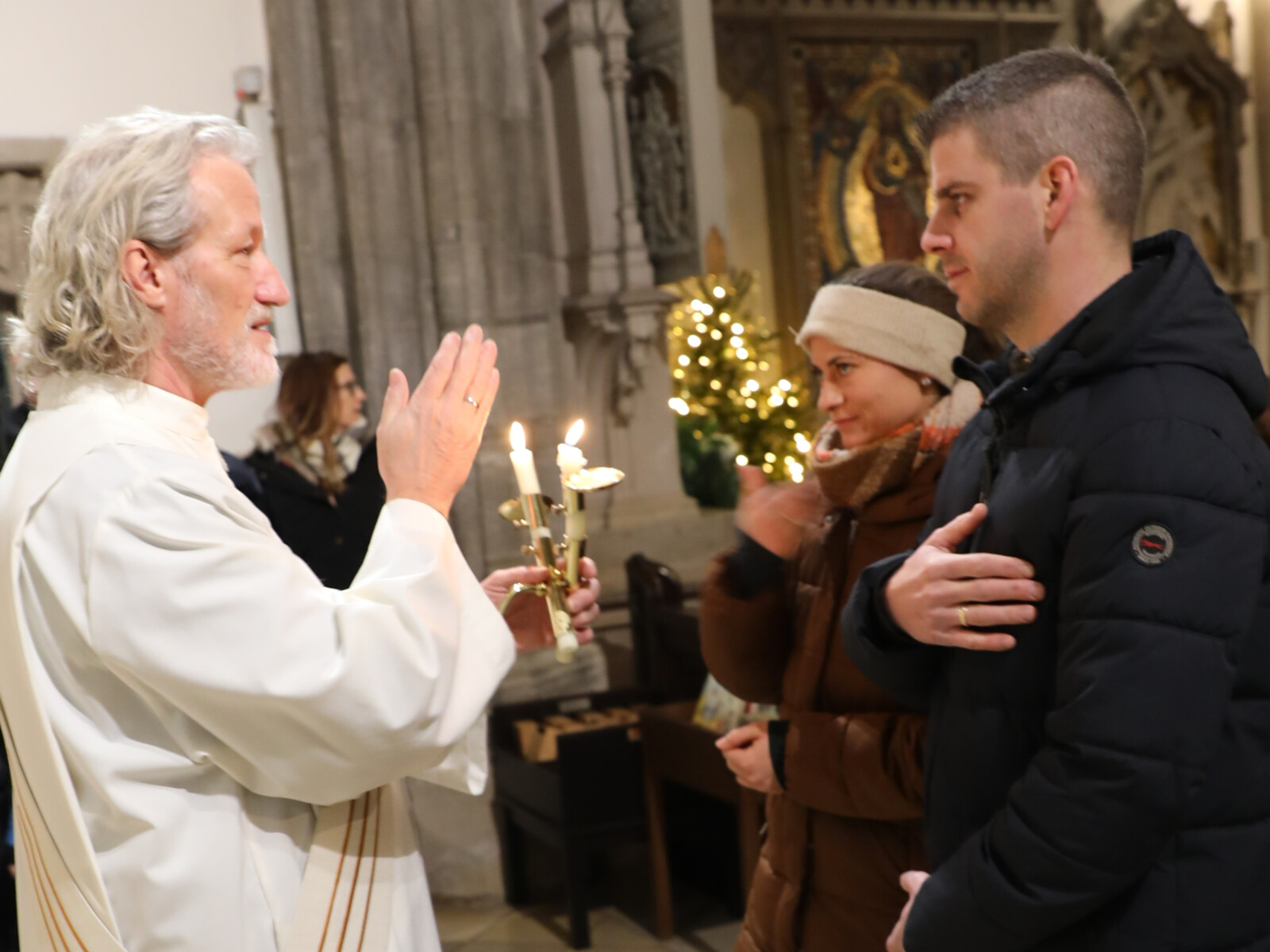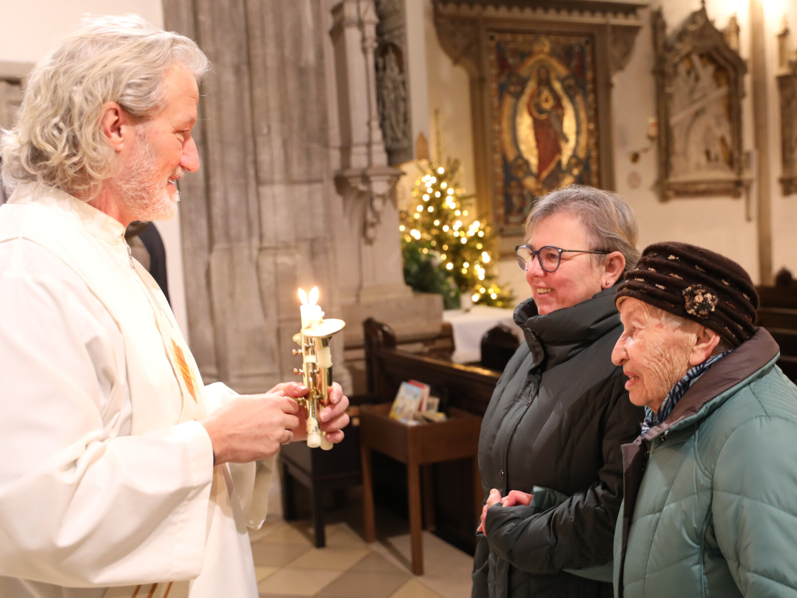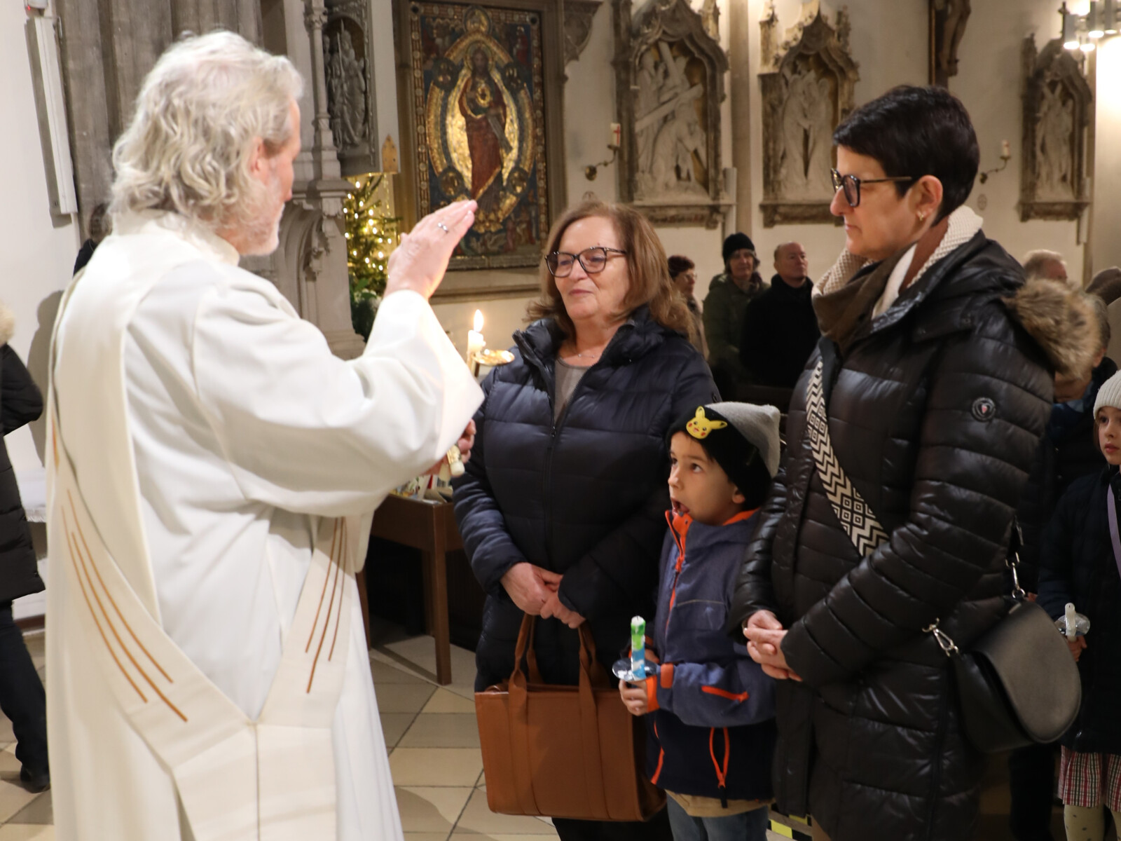 Im Anschluss an den Wortgottesdienst spendete Diakon Christian Muigg den zahlreichen Gottesdienstbesuchern mit geweihten gekreuzten Kerzen den Blasiussegen.