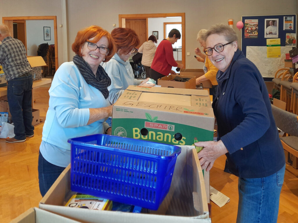 Die heurige Aktion wurde wieder sehr gut angenommen: unzählige Kartons und Säcke wurden gebracht, von den fleißigen Helfer*innen sortiert, verpackt und geschlichtet. Kleidung, Schuhe, Geschirr, Haushaltsartikel, Spielsachen und vieles mehr konnte so für den Transport vorbereitet werden.