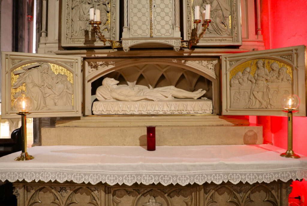 Zum Abschluss der Liturgie öffnete Pfarrer Grill das Grab Jesu, um die Beisetzung sichtbar zu machen.