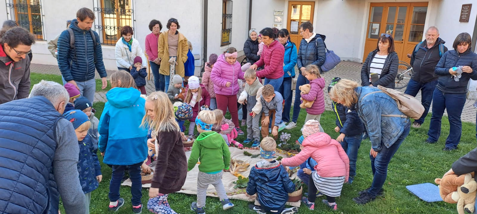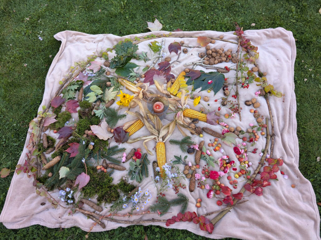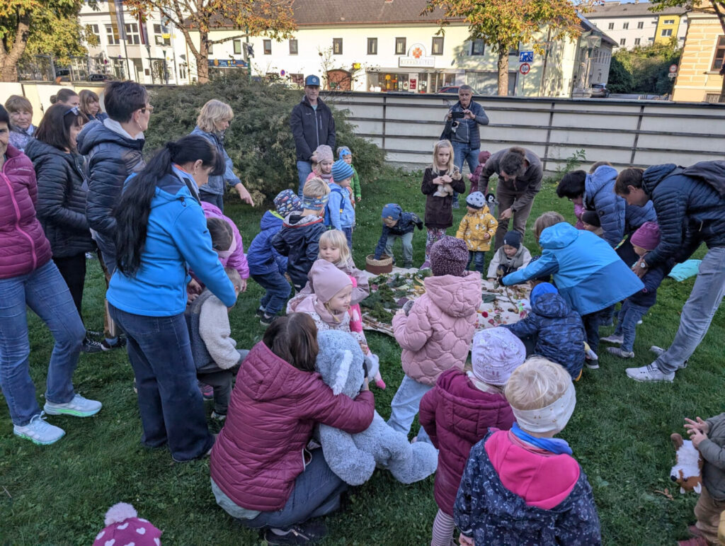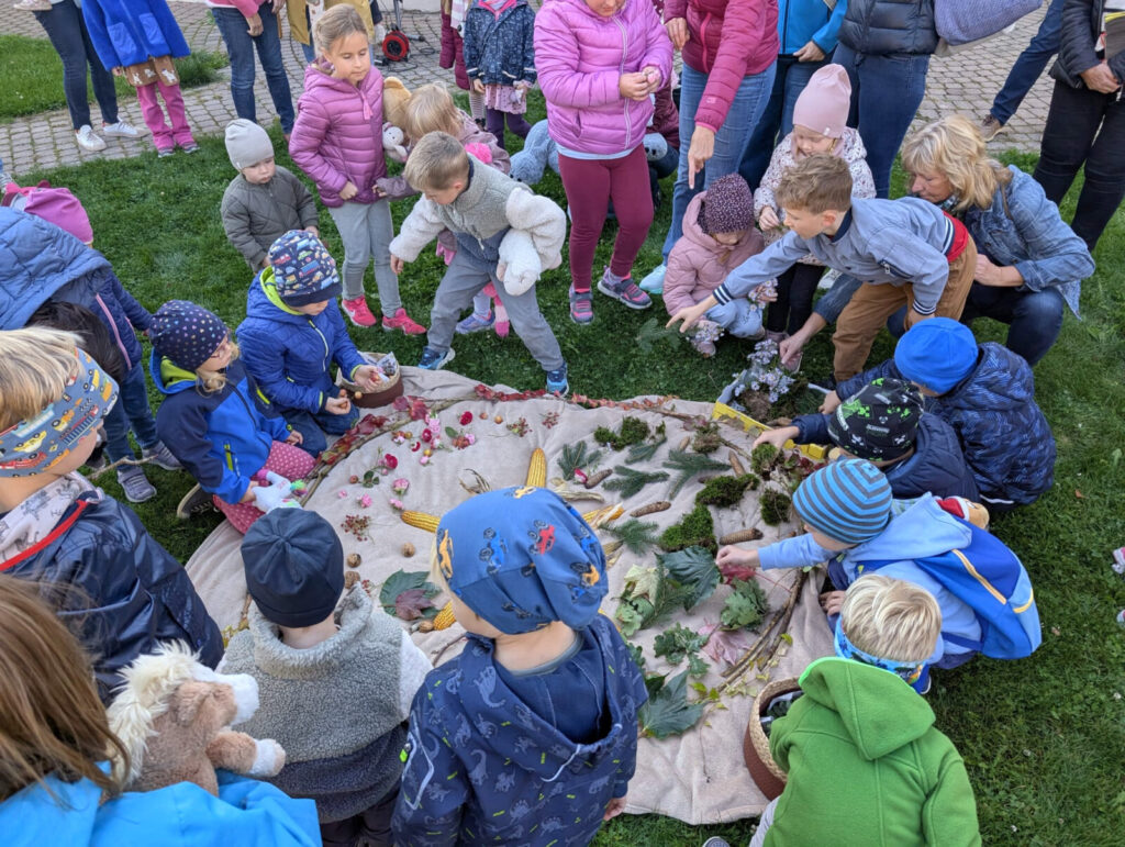 Gemeinsam wurde auch ein bunter Herbstkreis aus Naturmaterialen gelegt. Die Kinder waren mit Begeisterung dabei!