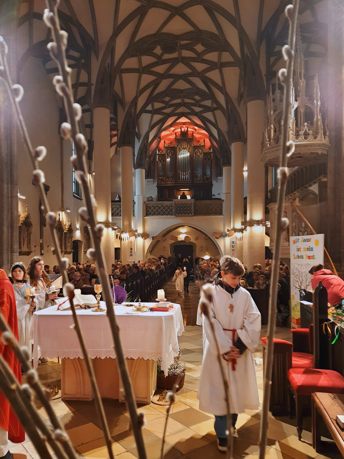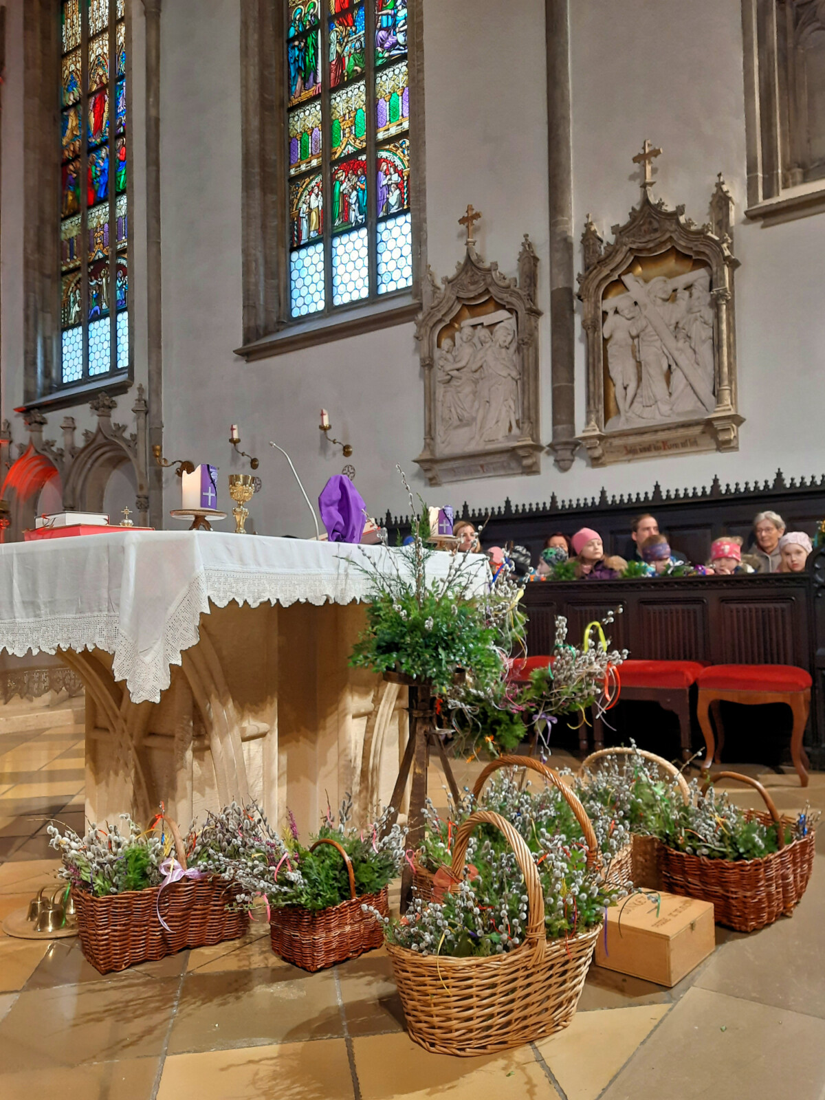 In die Feierlichkeiten nach der Prozession rückt mit dem Lesen der Passion das Leiden und Sterben Jesu Christi in den Mittelpunkt.